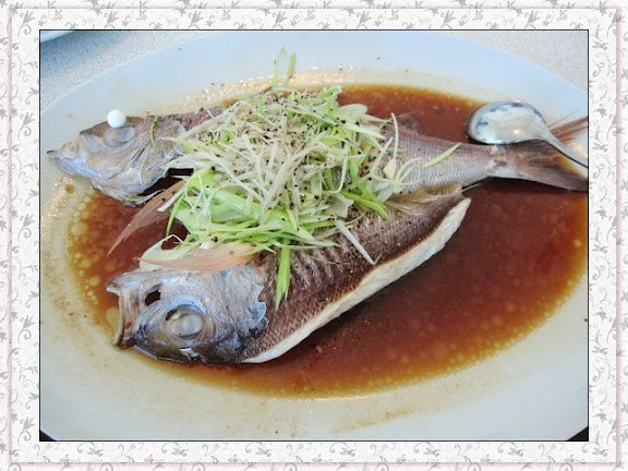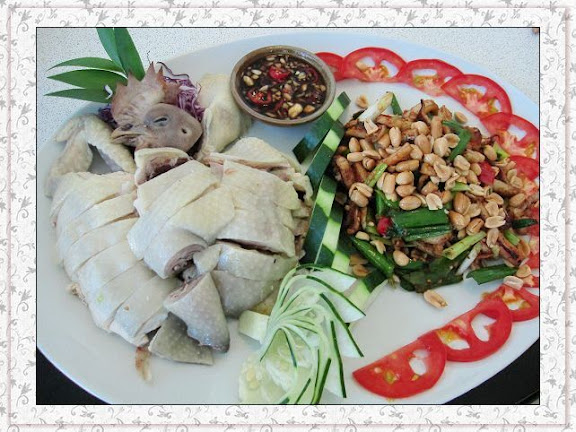 比較起來這道菜就普通了點~~雞肉雖然沾著蒜蓉醬油還OK但肉乾乾的~~ 不過旁邊的那個花生炒魷魚就很好吃~~味道剛剛好~~