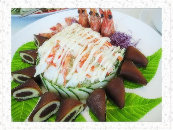 趁著小弟要當兵的前全家到鮮靚用餐~~ 我們是用訂桌的方式(NT3,500)~~沒有點菜~~菜單部份全交給餐廳處理~~ 所以菜名部分我就不是很清楚了~~ 下面是我們當天的菜色~~加上水果共10道餐點~~ 涼拌的味道還不錯~酸酸甜甜的~~生魚片部分也新鮮~~
